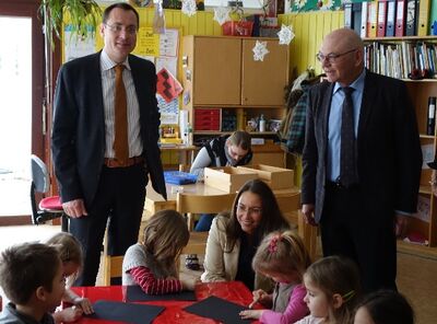 Yasmin Fahimi, Generalsekretärin der SPD, im Kinderhaus der AWO in Aalen, begleitet wurde sie von OB Rentschler und dem SPD-Kreisvorsitzendem Klaus Maier